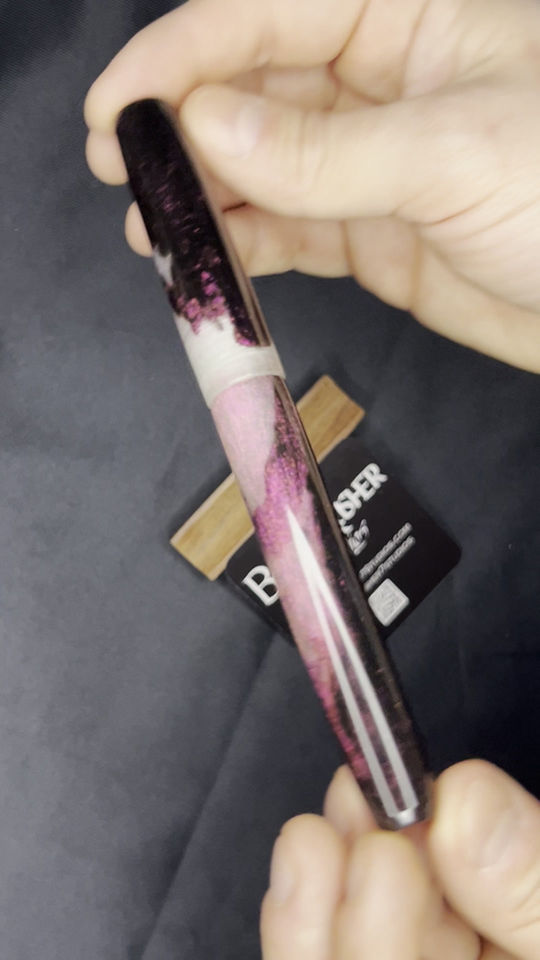 Velma model made for a #6 JoWo nib "Bloody Intentions". Colorshift Micah surrounded by deep black, red and white - complete with a Gold BC7 finial. Pen also comes with choice of a silver or gold nib in your preferred size. Rose gold and black nibs are available for a $5 increased price.